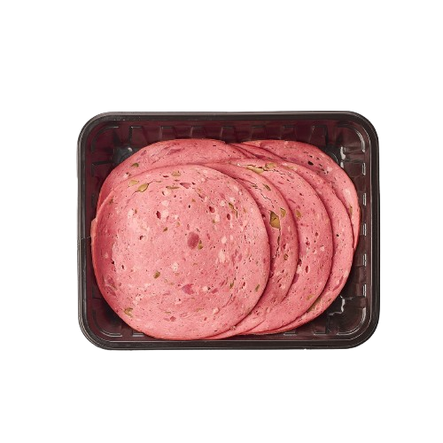 لانشون بيتزا. لانشون اللحيمي بقطع الزيتون والفلفل.